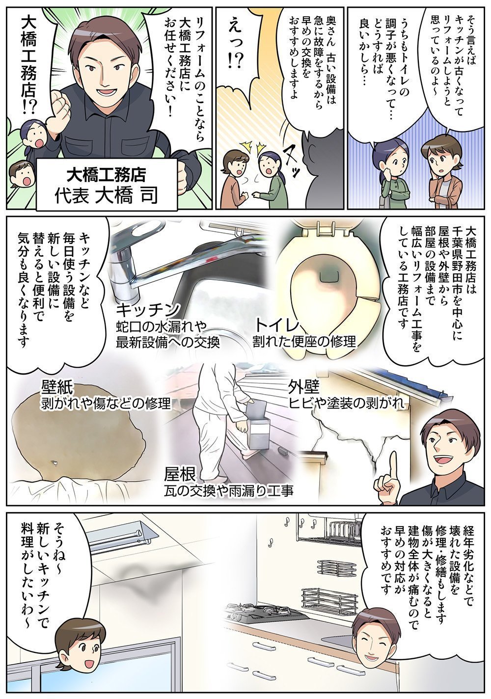 千葉県野田市で内装や外装、外構リフォームを手掛けている「大橋工務店」の店舗案内をいたします。
